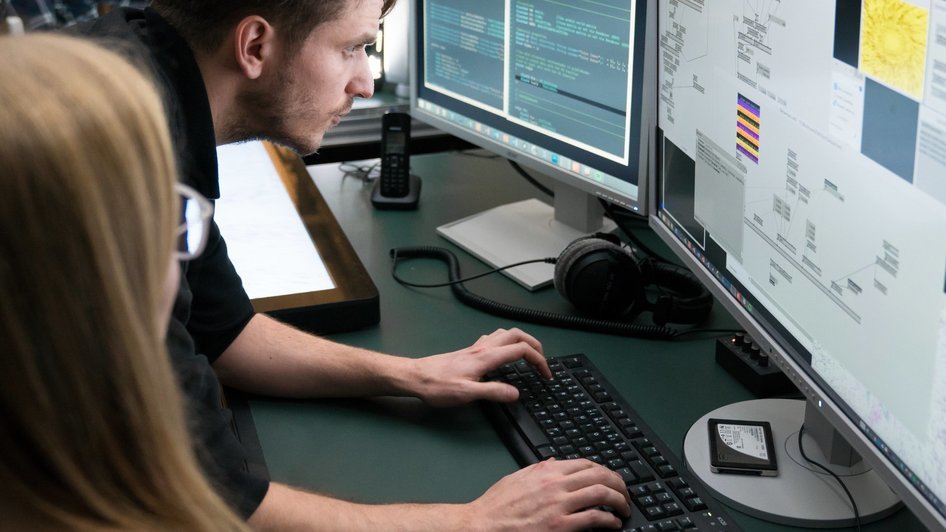 Even though our main spoken languages are German with lots of English, we are also fluent in JavaScript, vvvv/vl, Python, Ruby, C#, C++, Golang among other vernaculars.
