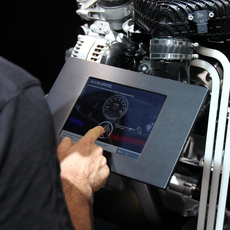BMW uses interactive touchpoints to market its premium cars at a variety of trade fairs. We enabled all BMW and MINI departments to prepare consolidated product information for specific markets and events. Our system allows the global pool of devices to be put into service. Silent updates to technical data can be made while the devices are being used.
