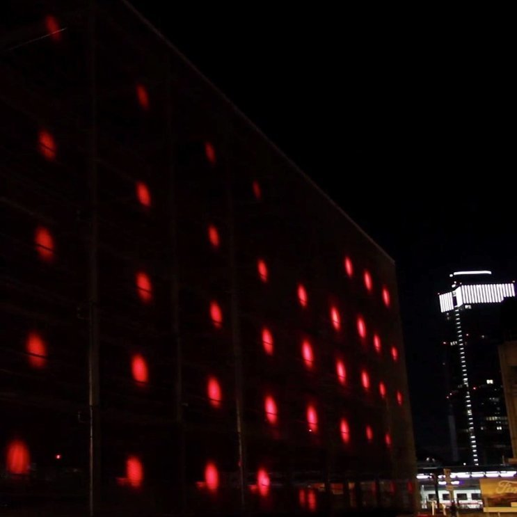 We had creative and technical oversight on the project and discovered early on that the facade of the parking garage could be used as a crowd puller. The facade is visible from the main road leading past Frankfurt’s main train station.