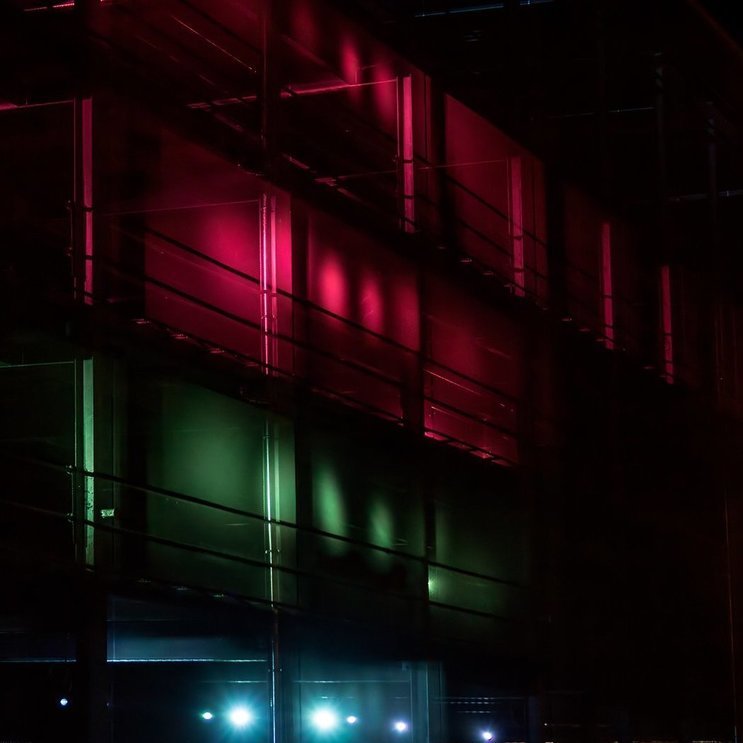 We therefore evaluated moving lights with extremely high luminosity as a cost-effective alternative. When deployed intelligently, their ability to be kinetically controlled brought exciting possibilities for pushing the architecture of the building into the limelight.