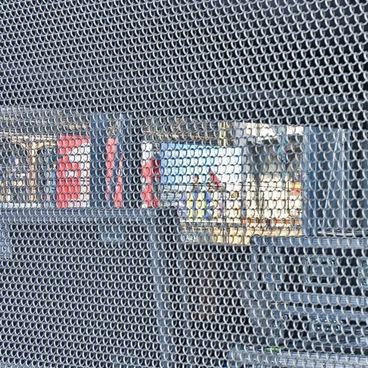 Each spotlight was separately controlled. Through rotation, movement, brightness, and scattering angle, we positioned highly precise light that was broken and reflected by the mesh onto the facade.