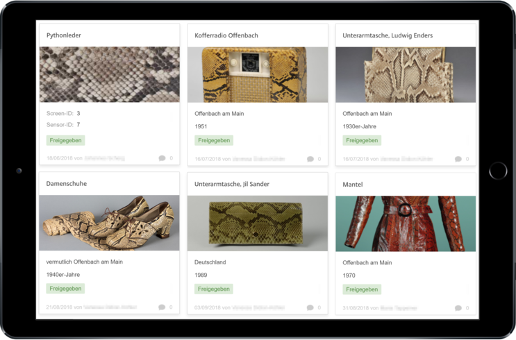 To create an extensive digital archive as content for the media tables, images of the original exhibits, descriptive information as well as meta data associating every object with the corresponding physical hardware sensor had to be merged in one database. Today, a total of 180 historical pieces is presented in the exhibition. The museum staff can access and update this data independently online as well as integrating alternative or additional samples any time.
