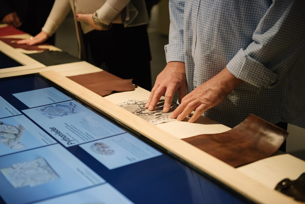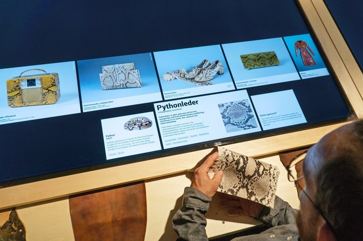 Also, the museum draws on digital media for the first time ever, taking a step towards a modernized overall concept. The wide range of leather types – from thick cowhide to brittle python skin – is highlighted by eight media tables.