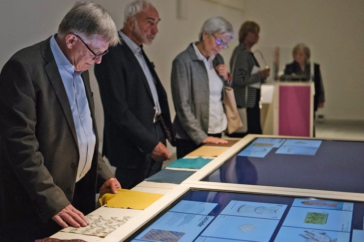 Visitors can not only experience these samples with all senses, their touch also activates the display of detailed information on special features, application examples from the museum’s collection, workmanship, and finishings on the screens.