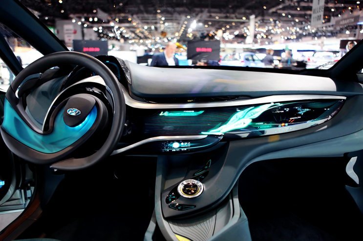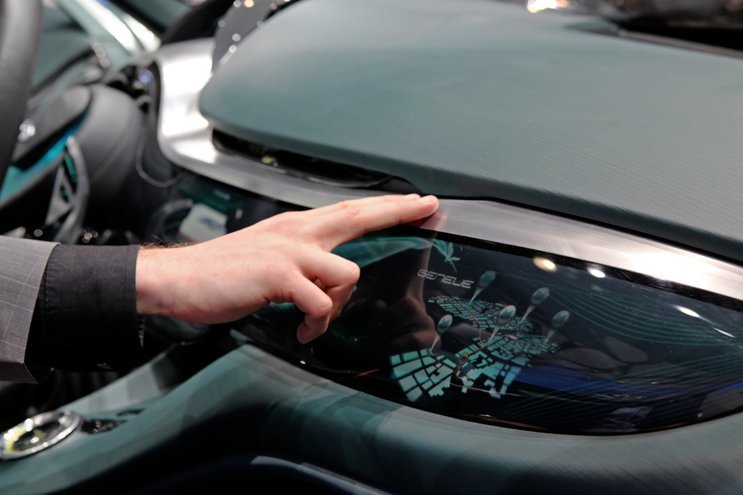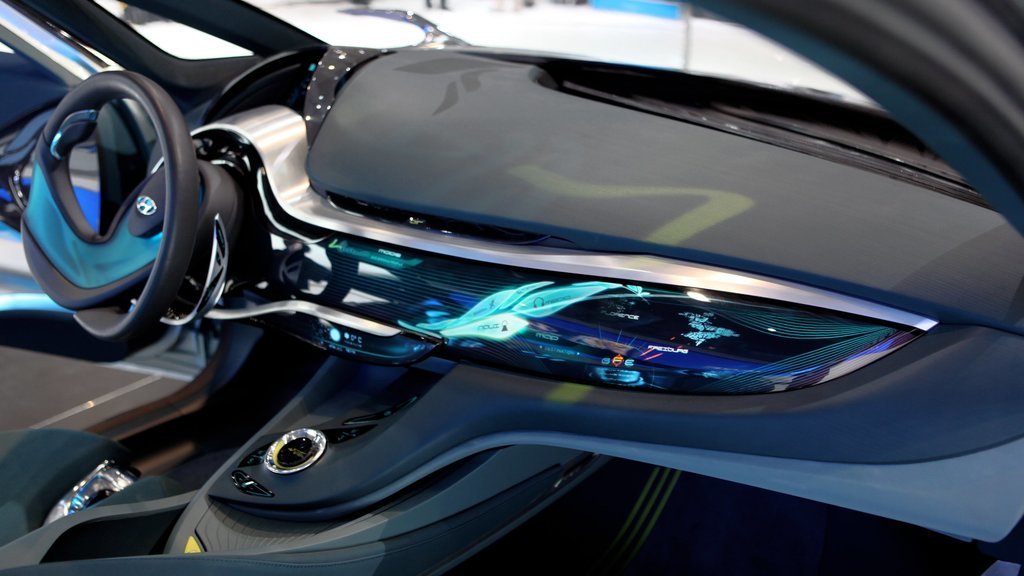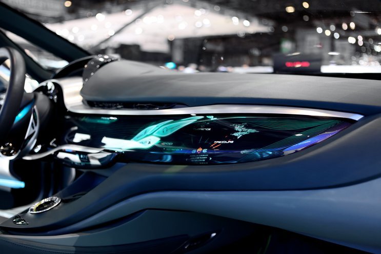 The cockpit’s main interface centers around an expansive, contoured screen, which perceives touch and gestural inputs along its fascia wide-display; the main display alone is over 800 mm wide.