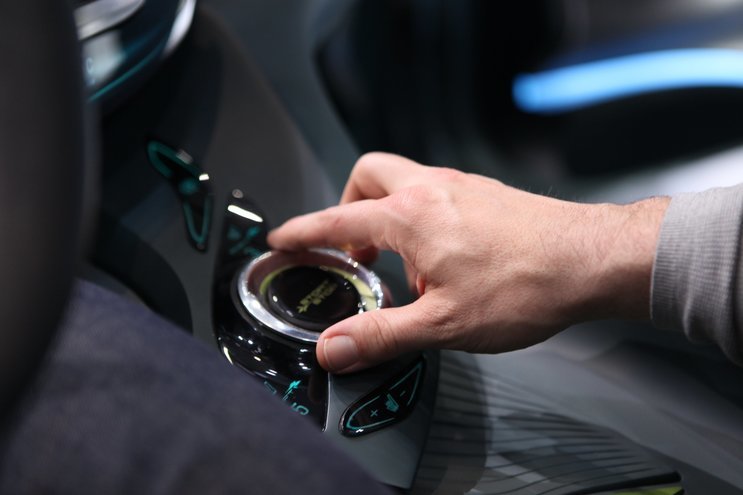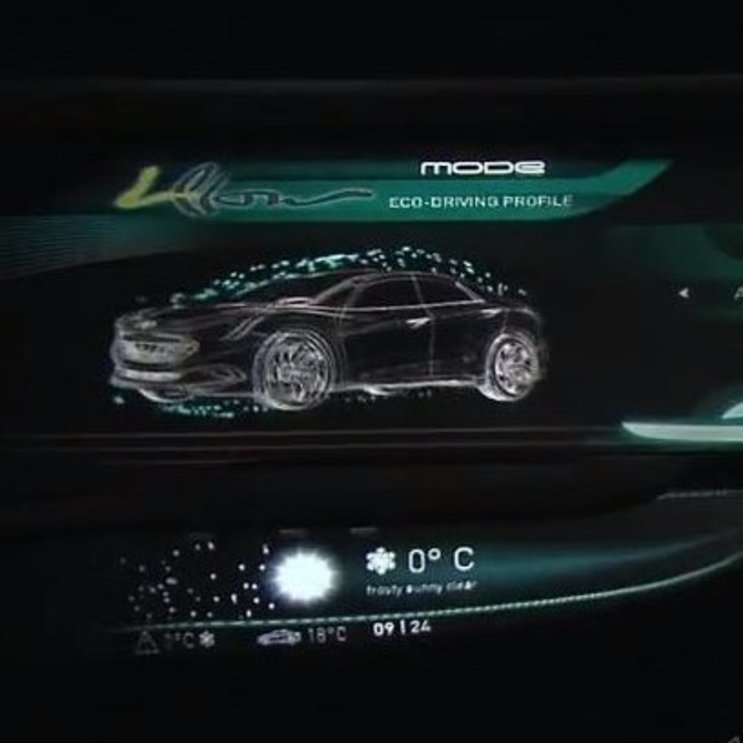 In addition to the display of a driving-style profile and its energy consumption, the HED-7 shows music in a “cover flow” view. The music library can be displayed either on the large front panel or on the smaller panel on the gear lever and can be controlled by “flow” gesture or with the knob in the center console.