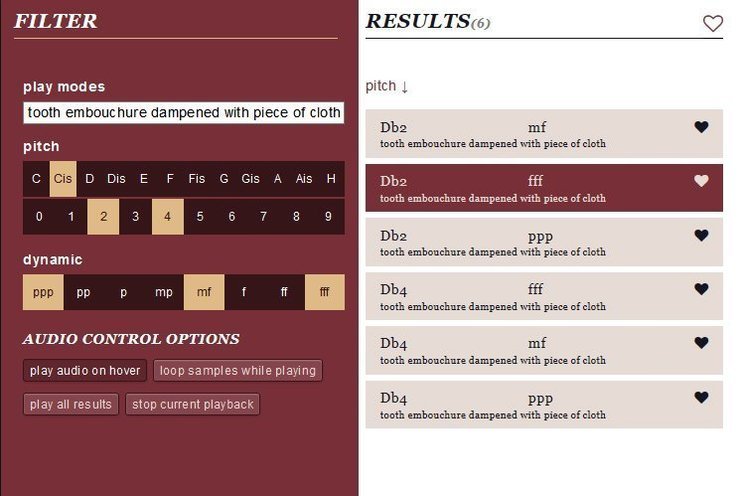 We developed an online bassoon sound-encyclopedia for bassoonist Johannes Schwarz. It is the most extensive contemporary sound archive for the bassoon, including more than 26,000 different sounds and more than 100,000 specific items of information on tones, noises, notation, and different styles of playing. The online archive is available all over the world and is suitable for both amateurs and musicologists.