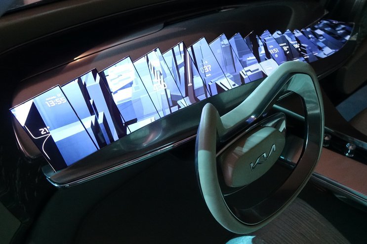 An intensive process of experiment, testing, and delicate manufacturing lay between the initial idea of using ultra-thin TFT displays in an entirely new way up to the implementation of the finished exhibit into Kia’s concept car.