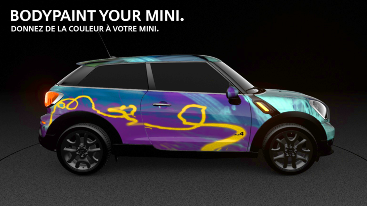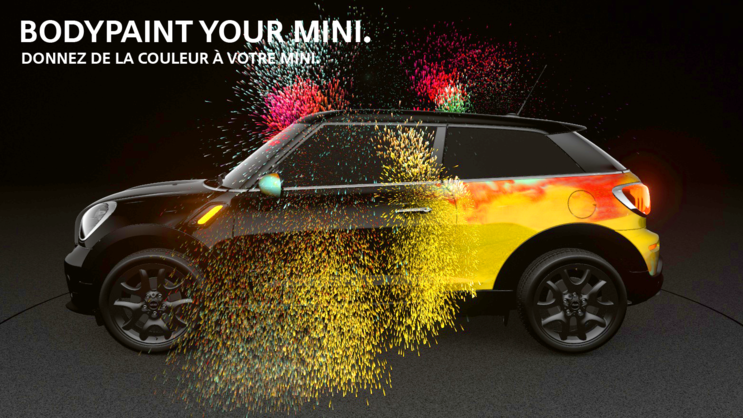 Point at the dog bowl to make the MINI shake off all its colors like a wet dog, opening up the stage for a new styling session.