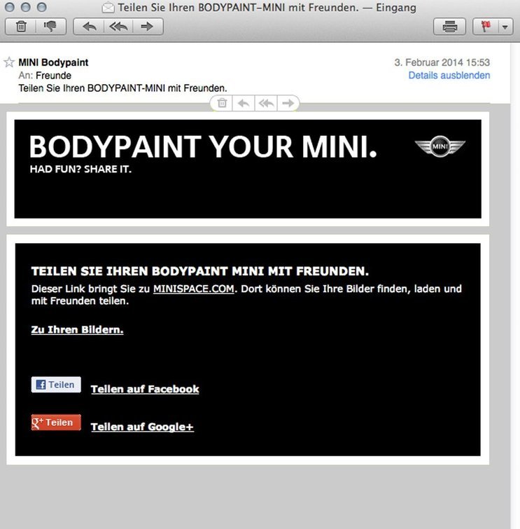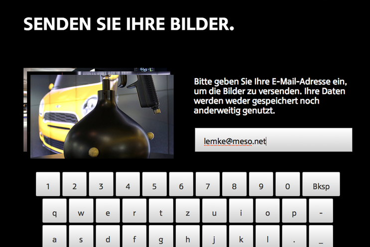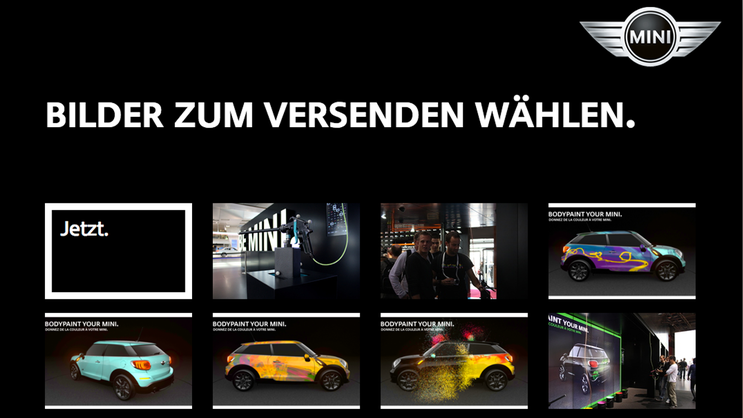 At the social media station visitors can share their process of spray painting, as well as personally created MINI styles via Email. QR codes help visitors to directly open the selected photos on their smartphones.