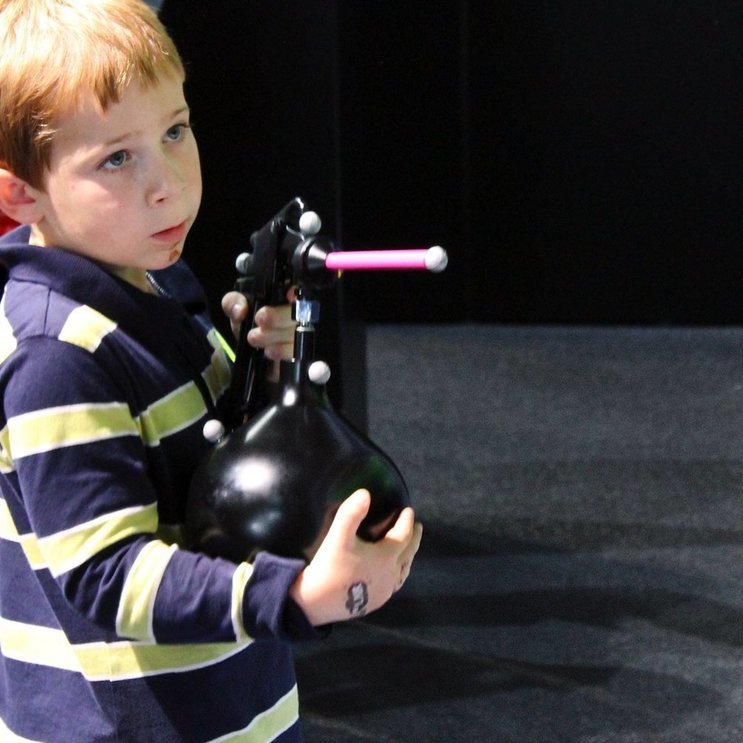 A WiFi-connected DSLR camera takes live photos of the visitors in action.